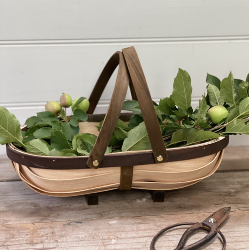 Trug made of FSC cypress pine with brass pins. Two handles that pivot for easy access.